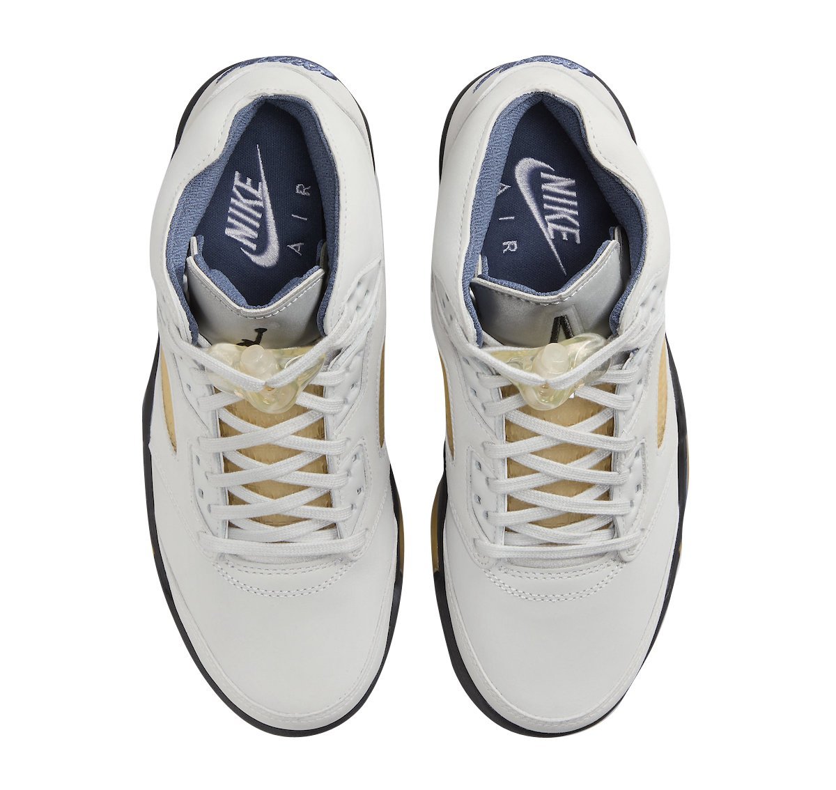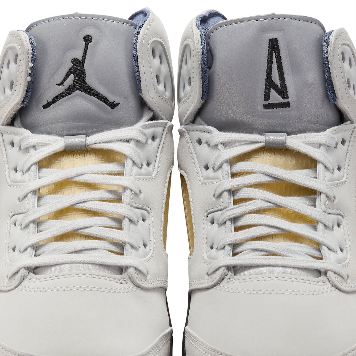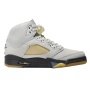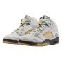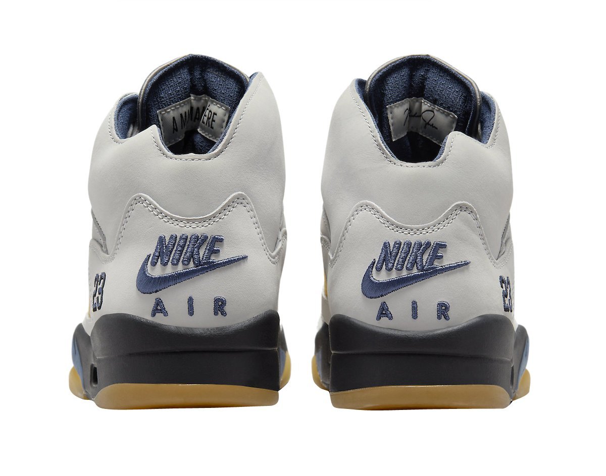 The Air Jordan 5 is given a Photon Dust upper with contrasting Diffused Blue accents. Elsewhere you will find co-branding on the tongue labels and an aged semi-translucent outsole that matches the aesthetics of the side and tongue netting.