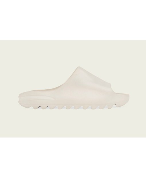 The Yeezy Slide Bone features a triple-Bone EVA foam upper with the stark white color of Bone covering the entirety of the silhouette in one monochromatic hue that goes from the single, wide sandal strap down to the unique sole of the shoe.