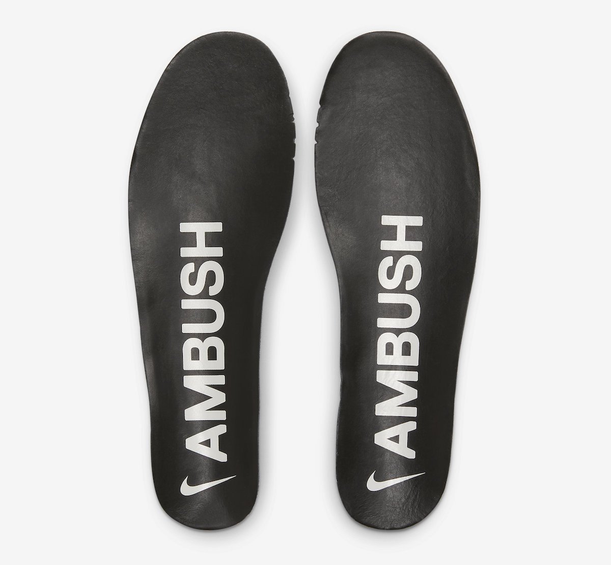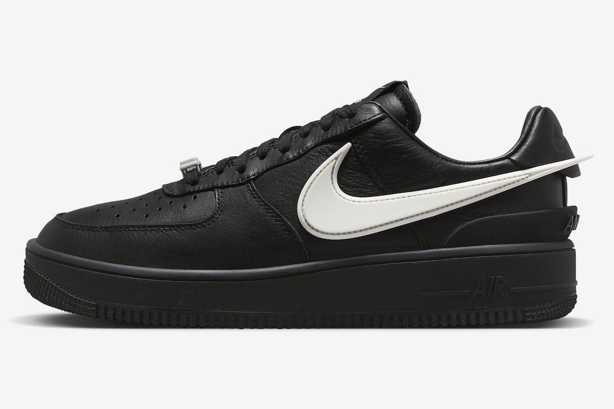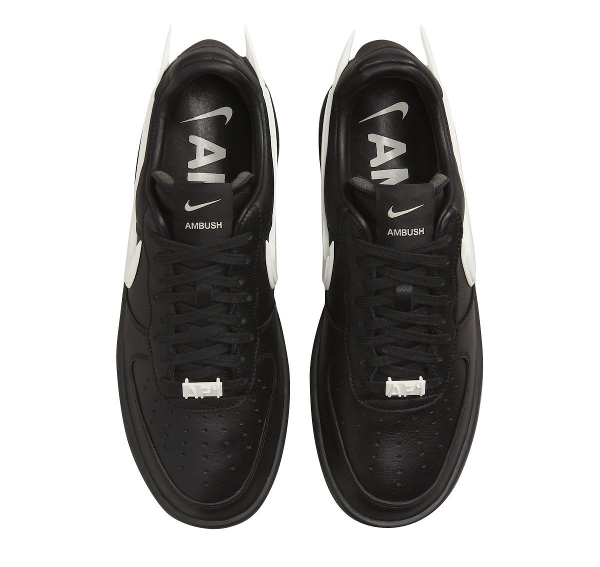 This AMBUSH x Nike Air Force 1 Low Black comes constructed in Black leather build detailed with a White oversized Swoosh similar to the AMBUSH Dunks. Other details includes AMBUSH branded tongue tags, heel counters, and outsoles, with 3D lace dubraes reading “AF-1” to complete the design. Black laces and sole are also in play. The shoes will be housed in co-branded packaging.
