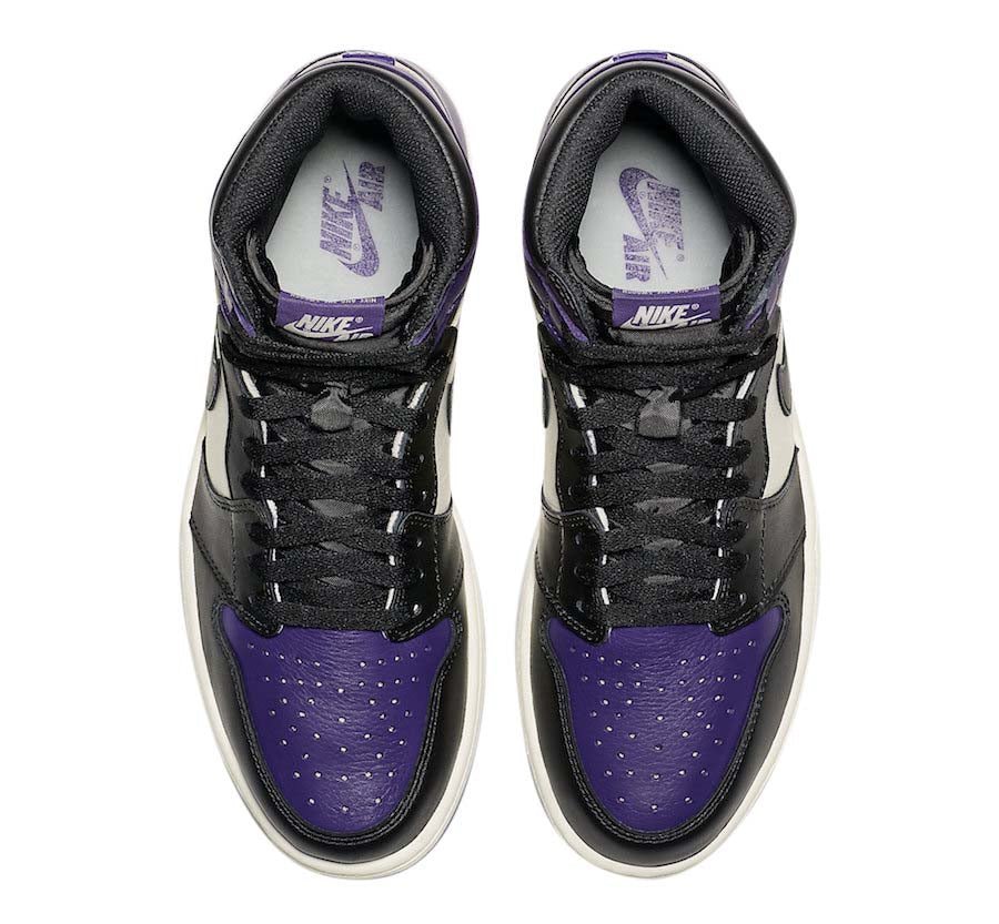 The toe box, heel and wings are finished in Court Purple, while a crisp white quarter panel is overlaid with a contrasting black Swoosh. The shoe earns its ‘OG’ designation through the purple Nike tag on the black nylon tongue.