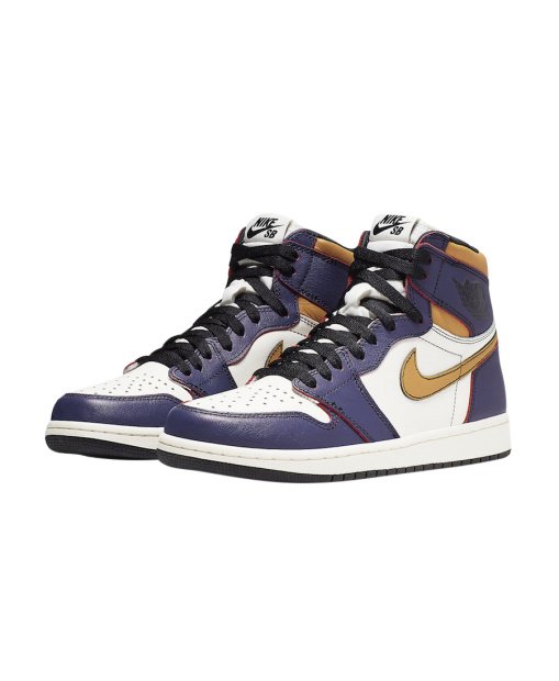 Working together again with Nike SB, the Air Jordan 1 returns in this ‘Lakers vs. Bulls’ edition that launched in May 2019. This colorway pays homage to the legendary matchup through a Court Purple and University Gold scheme on the leather upper that wears away to reveal red and black alternate hues.