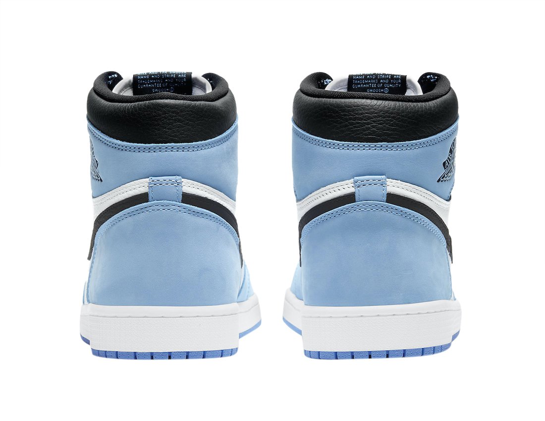 The upper of the Air Jordan 1 High University Blue is composed of a white and black tumbled leather upper with University Blue Durabuck overlays. Following traditional Jordan 1 detailing, a Nike Air woven label is located on the tongue and an Air Jordan Wings Logo is printed on the ankle. A white midsole and University Blue outsole complete rejuvenated classic.