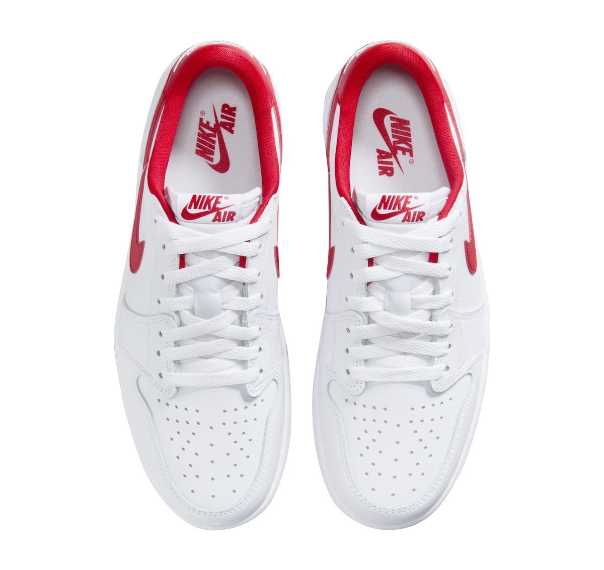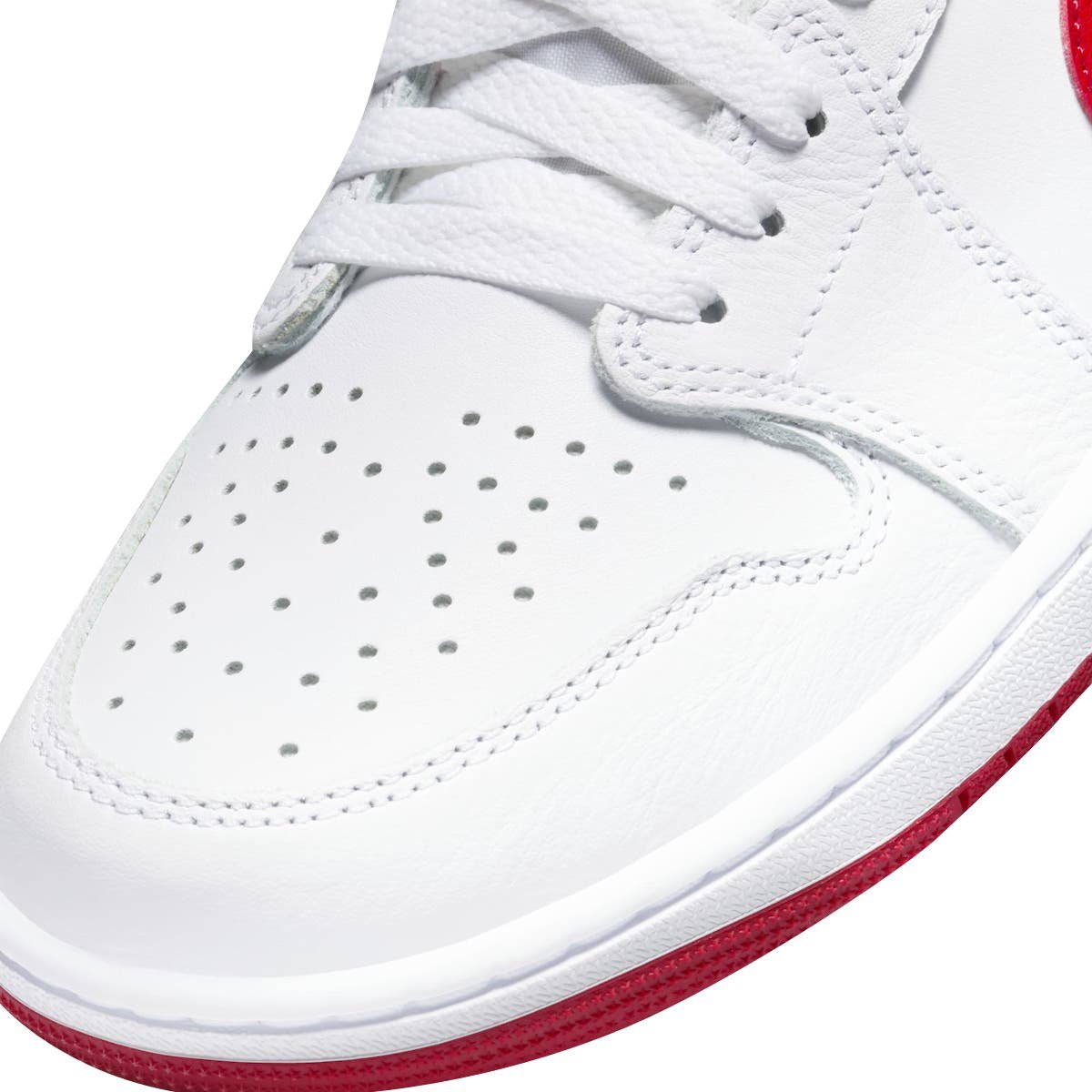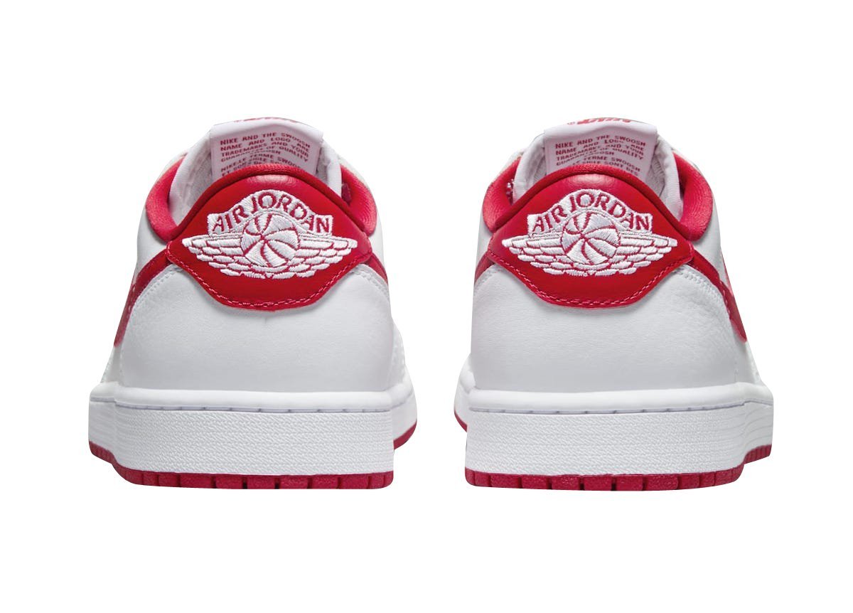 Overall, White leather comprises its upper while the highlight University Red is utilized for the Swooshes, heel tabs, branding on the tongue label, inner lining, and rubber outsole. Finally, the signature Wings logo on the heel tabs in white round out the design.