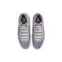 Celebrating the 20th anniversary of the original launch, the mid-top build is faithful to the original, featuring a nubuck upper with tonal webbing lace loops and a shiny patent leather overlay, all rendered in tones of Medium and Cool Grey.