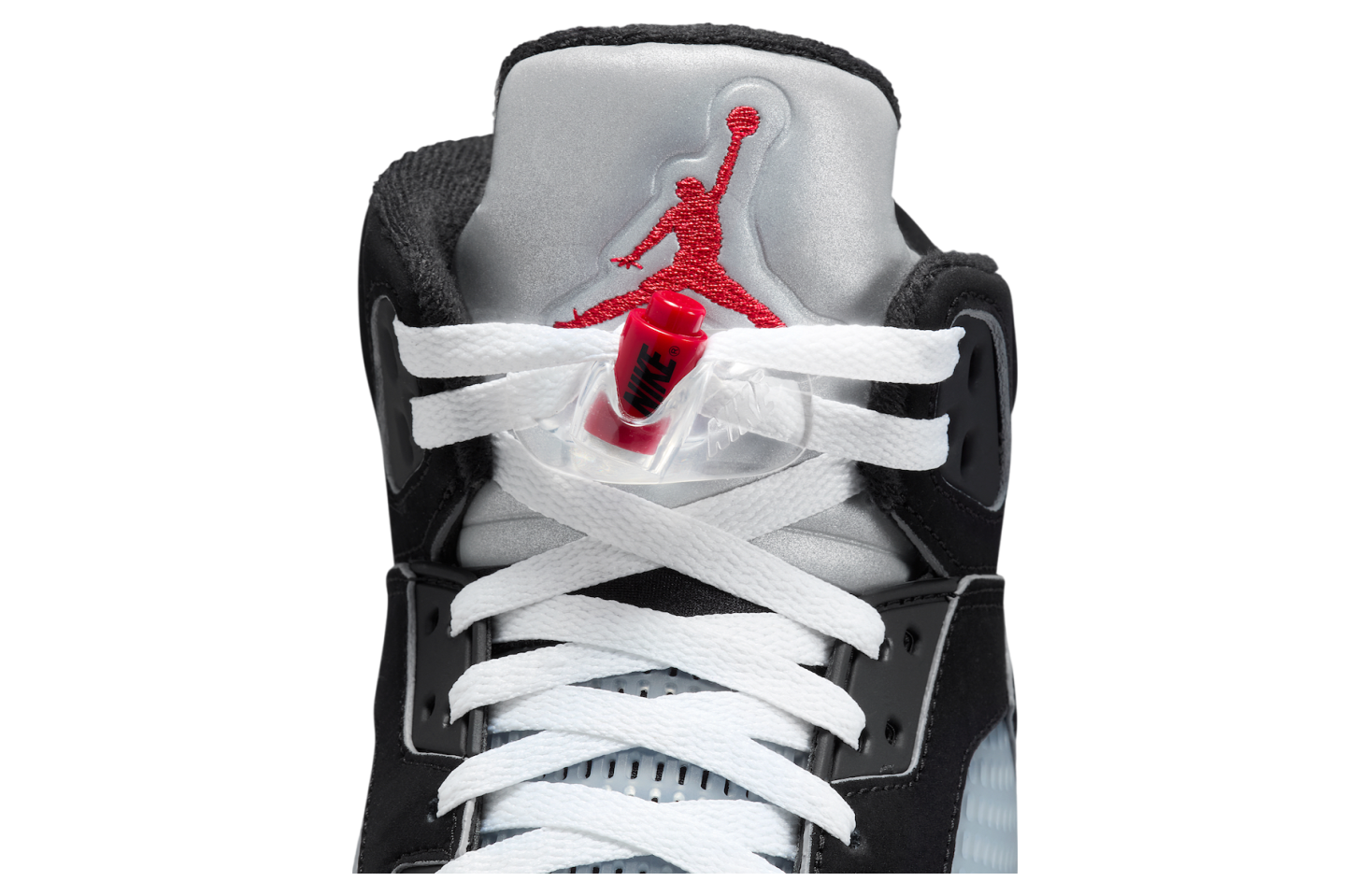 The Air Jordan 5 Retro OG ‘Black Metallic Reimagined’ brings back a black nubuck upper with molded TPU eyelets, quarter panel netting and reflective piping.