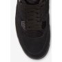 A solid black finish is executed on the smooth nubuck upper, featuring OG details like quarter panel netting, molded eyelets, and support wings.