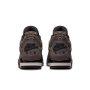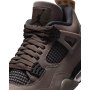 The Air Jordan 4 Retro ‘Cave Stone’ showcases a dark taupe hue on the smooth nubuck upper, featuring contrasting black accents on the quarter panel netting, molded eyelets, and textile collar lining.