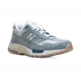 The lifestyle runner sports a muted teal mesh upper with tonal suede overlays. Grey synthetic leather reinforces the forefoot and collar, featuring a Kith wordmark on the lateral side.