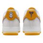The Kobe Bryant x Nike Air Force 1 Low Retro QS ‘Lakers Home’ sports a white leather upper, accented with a Varsity Maize Swoosh outlined in purple trim.