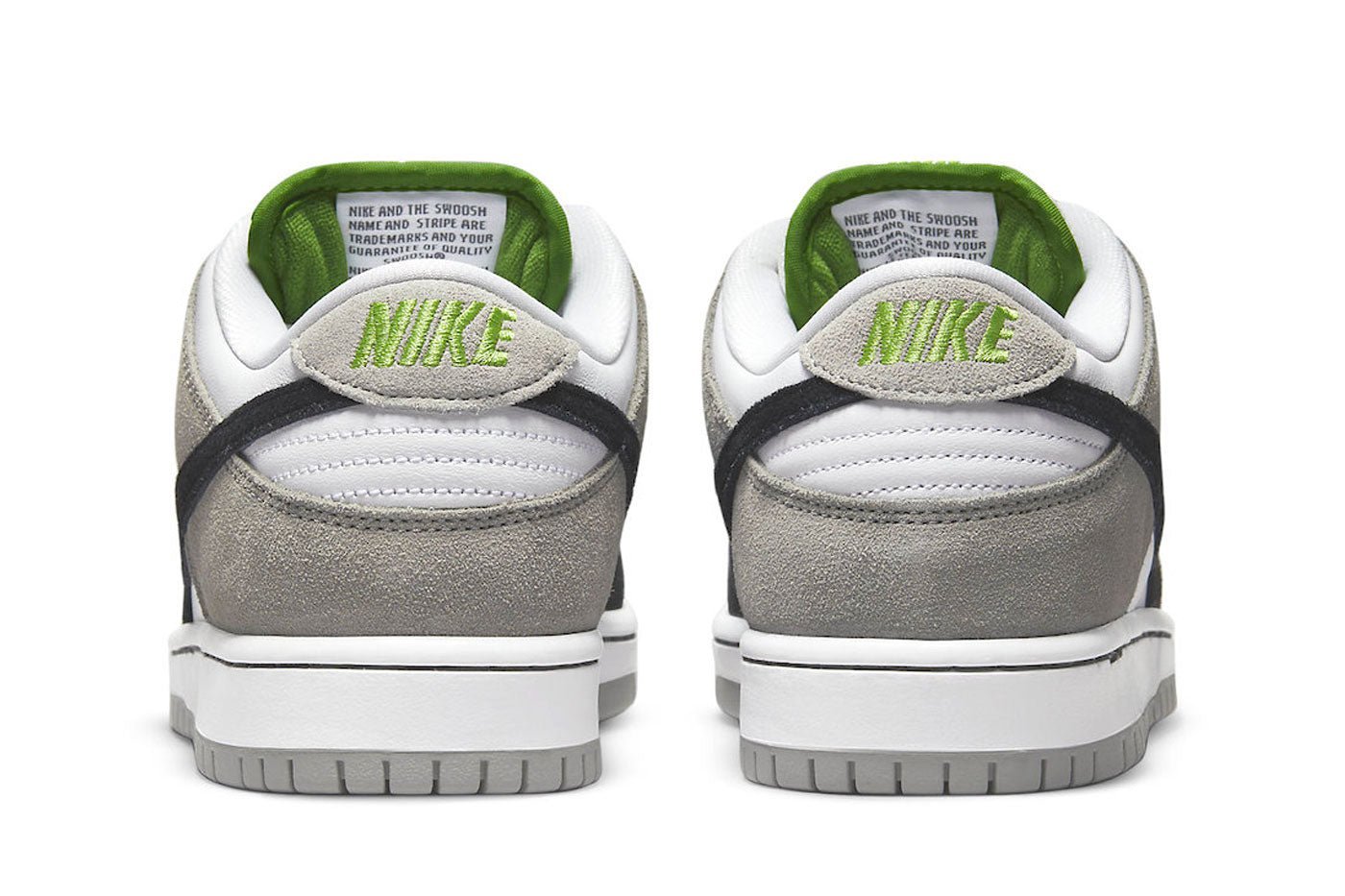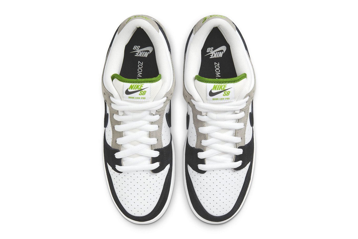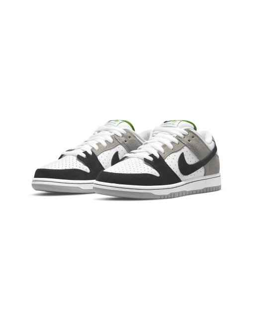Drawing inspiration from the original Nike Air Trainer 1 Chlorophyll, the Nike SB Dunk Low Chlorophyll features a white perforated leather upper with grey and black hairy suede overlays. Hits of green on the heel embroidery and lining add a subtle contrast.