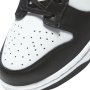 The upper Nike Dunk Low Retro White Black is constructed of white leather with black leather overlays and Swooshes. Classic Nike branding is featured on the nylon tongue, nodding to traditional Dunk design elements. A white midsole and black outsole completes the design.