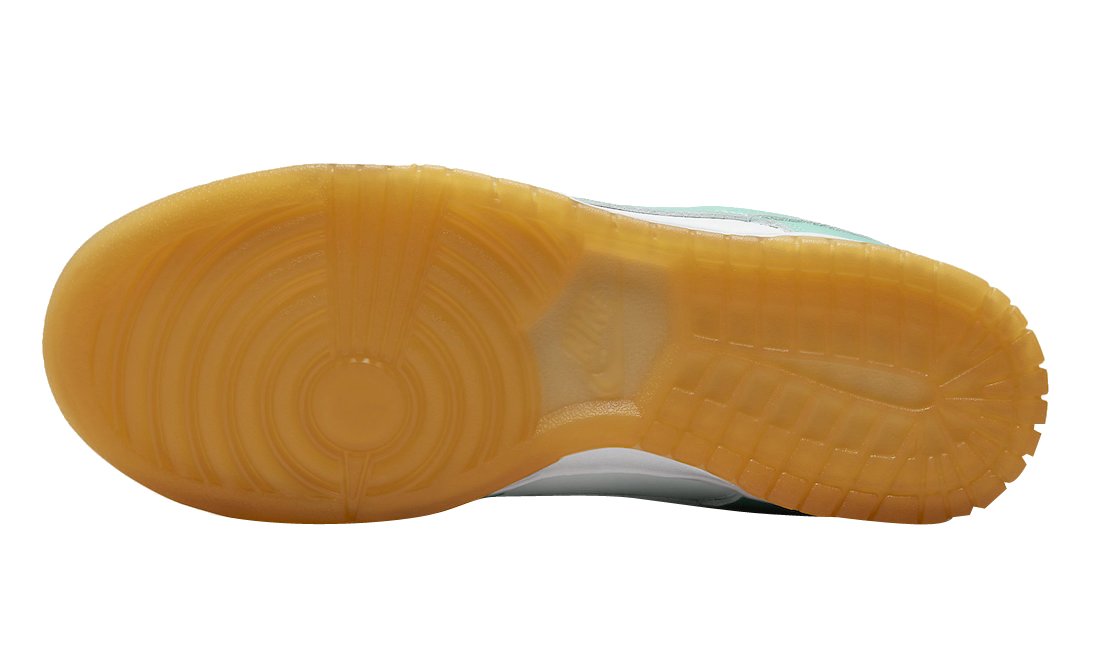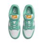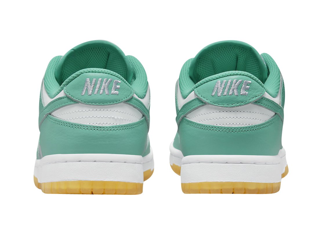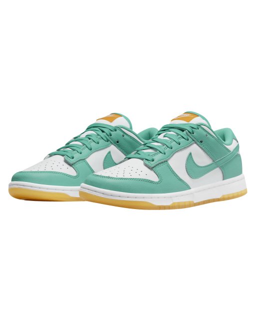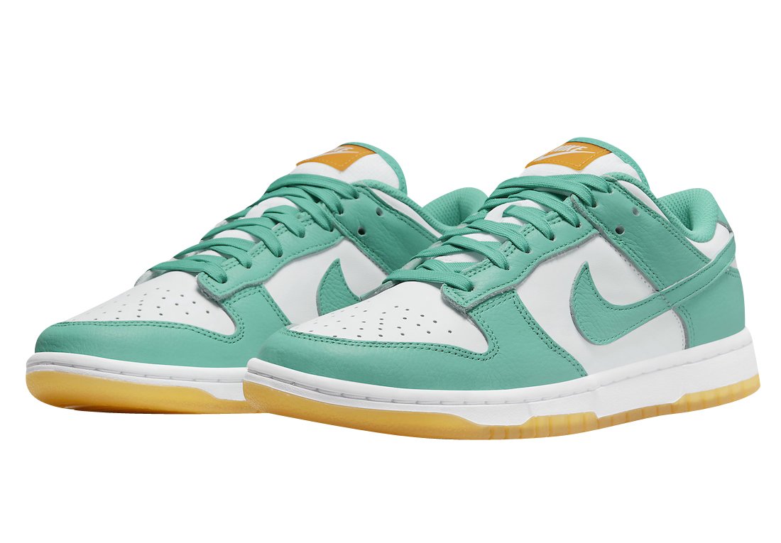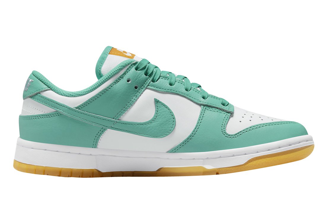 The Nike Dunk Low Teal Zeal offers a vibrant palette with a smooth white leather upper and bright teal tumbled leather overlays and Swooshes.