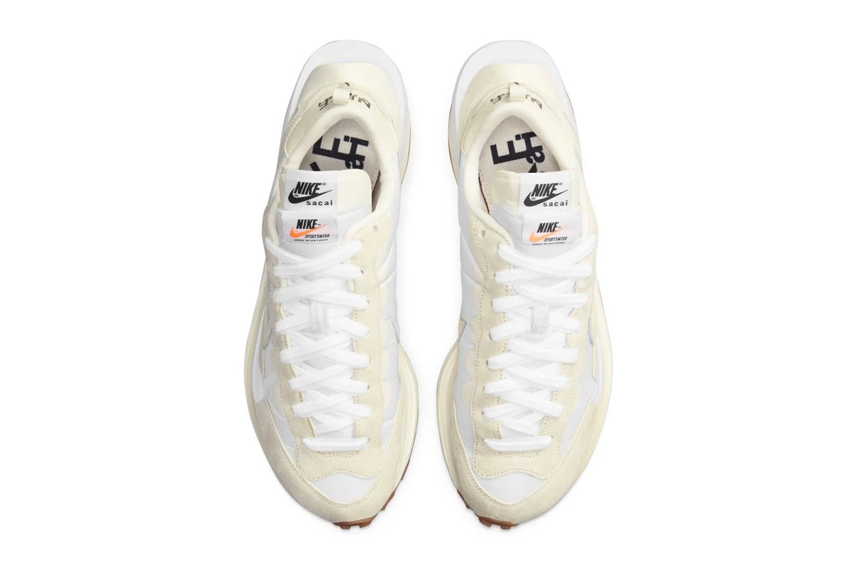 The sacai x Nike VaporWaffle ‘Sail Gum’ brings soft, neutral tones to a fashion-forward lifestyle runner that blends influences from Nike’s past and present.