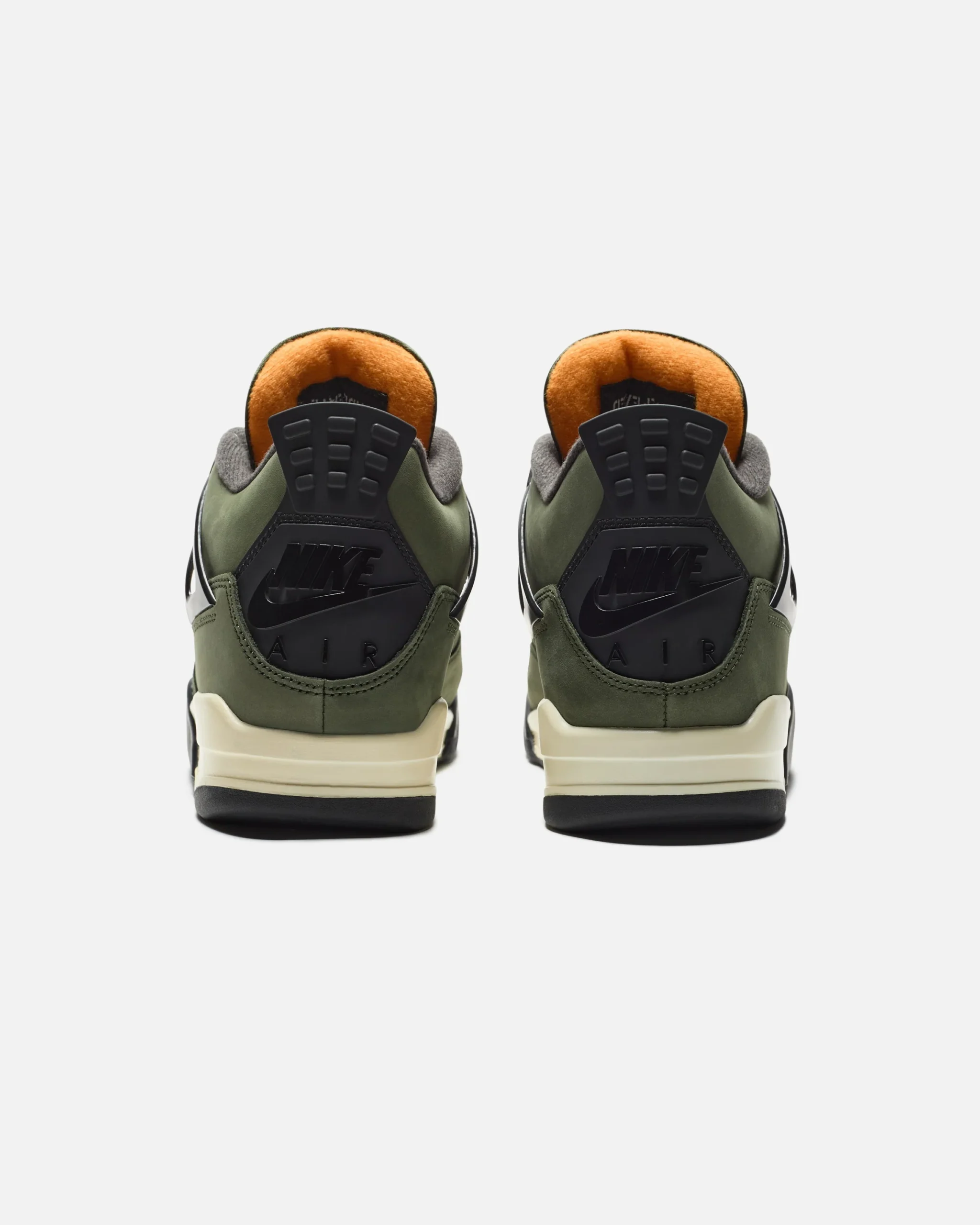 Inspired by an MA-1 flight jacket, the classic silhouette sports an olive green nubuck upper with contrasting black accents on the molded eyelets, TPU supports wings, and back tab, marked with a Nike Air logo. Velcro logo patches adorn the tongue, lined with vibrant orange textile on the interior side.