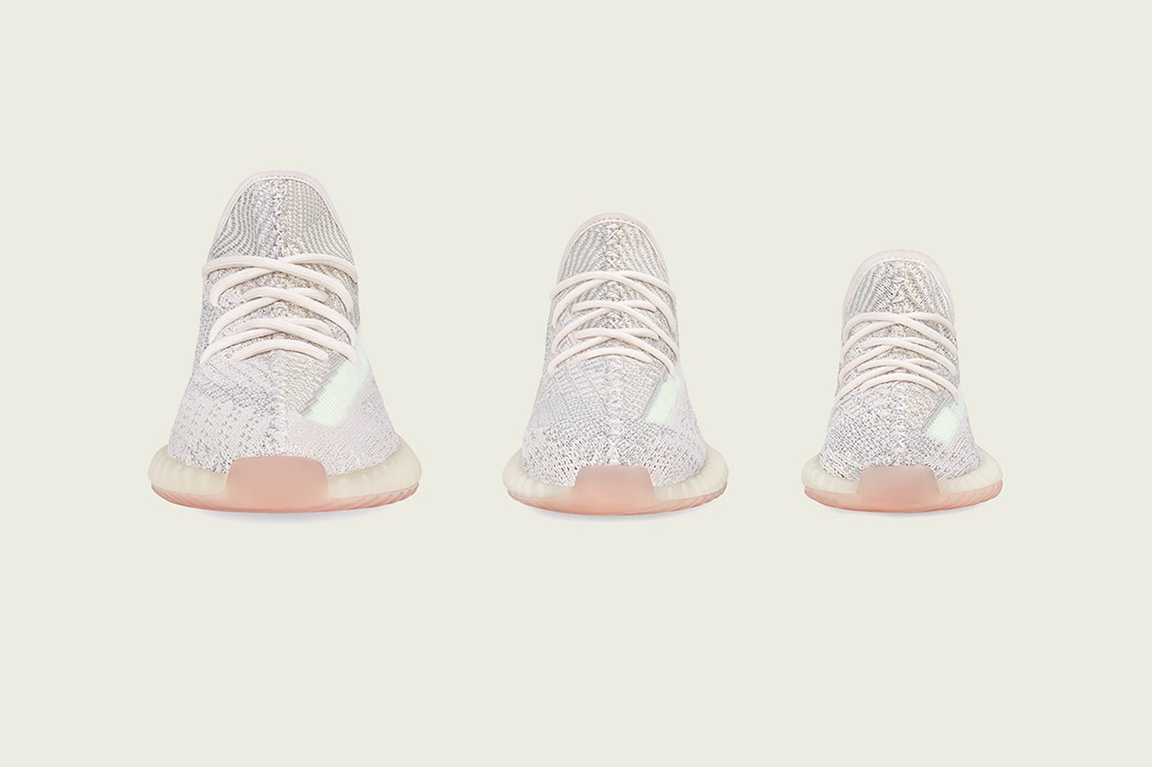 The Adidas Yeezy Boost 350 V2 ‘Citrin’ carries a dual-tone Primeknit bootie and tonal cord laces.