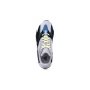The sneaker’s retro-inspired lines worked in tandem with a chunky silhouette reminiscent of an earlier era. A mesh base is finished in grey on the quarter panels and bright blue and teal on the forefoot. Suede overlays arrive on the toe and heel accented grey leather eyestays.